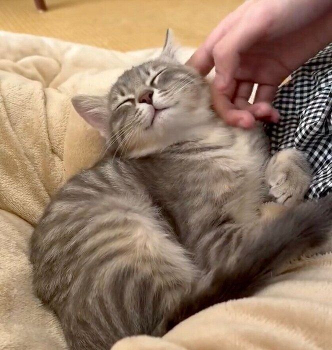 警戒心があった子猫が、次男のナデナデで“骨抜き”に? 猫が喜ぶなで方のコツは|獣医師解説