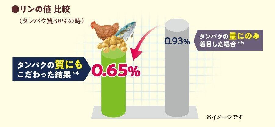 *5:Physicalife室内猫用のタンパク質源をチキンミール、フィッシュミール、脱脂大豆に置き換えた場合