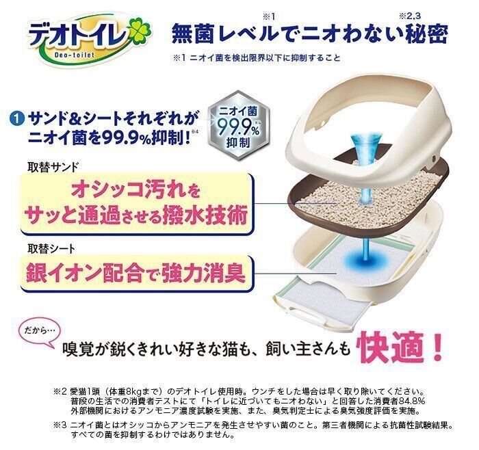 ※2 愛猫1頭(体重8kgまで)のデオトイレ使用時。ウンチをした場合は早く取り除いてください。