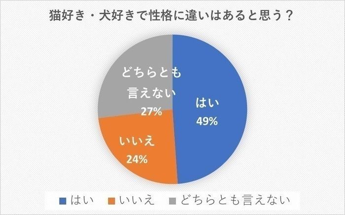 「違いはない」「どちらとも言えない」理由として目立ったのは、「犬も猫も好きな人もいるから」「どちらも大切なパートナーとして接する気持ちは変わらない」などの意見。犬も猫もどちらもかわいい、大切な家族だと考えている人が多いようですね。