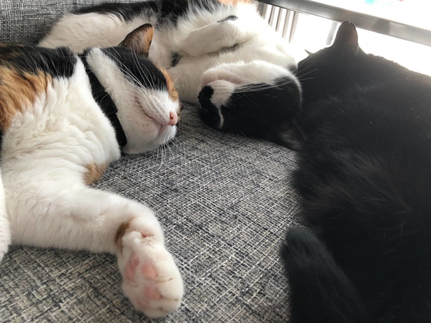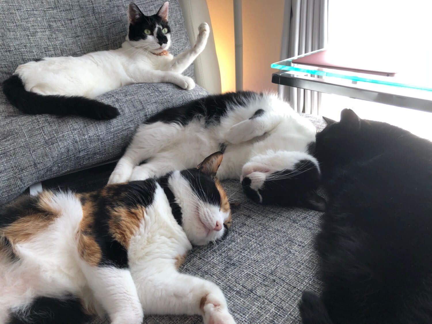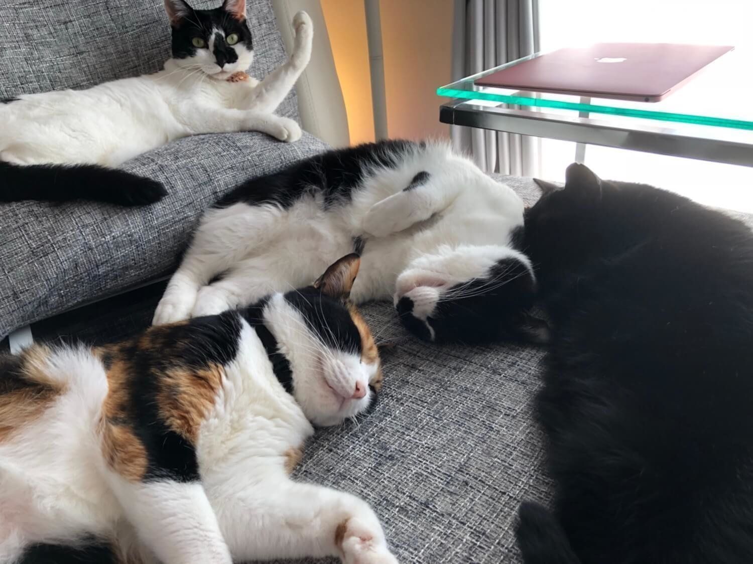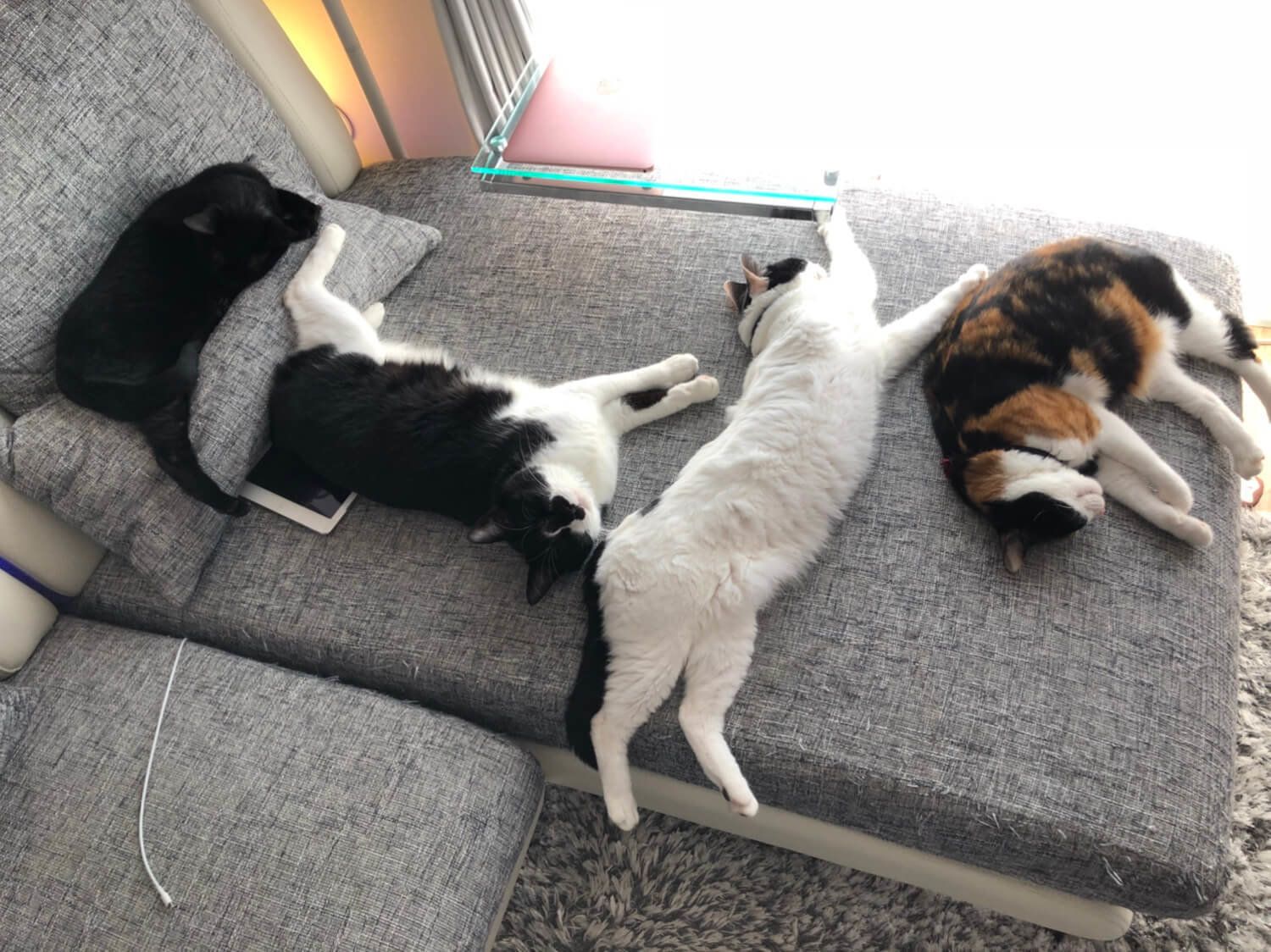 各々寝ているのですが、散らかりすぎて僕の居場所がありません。