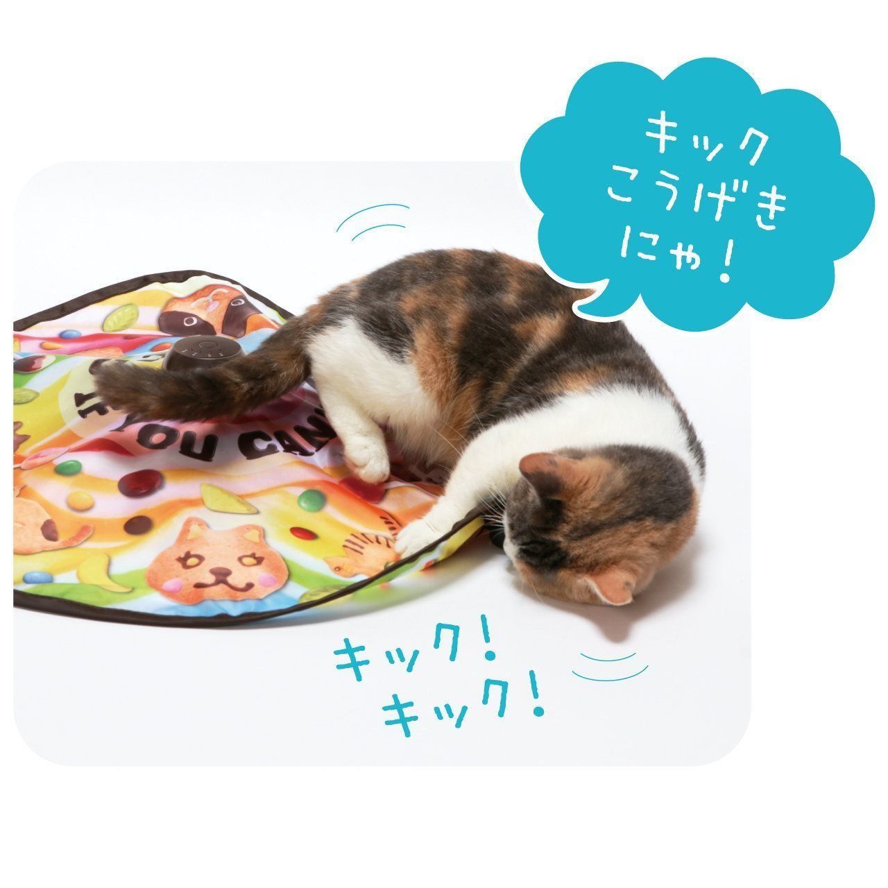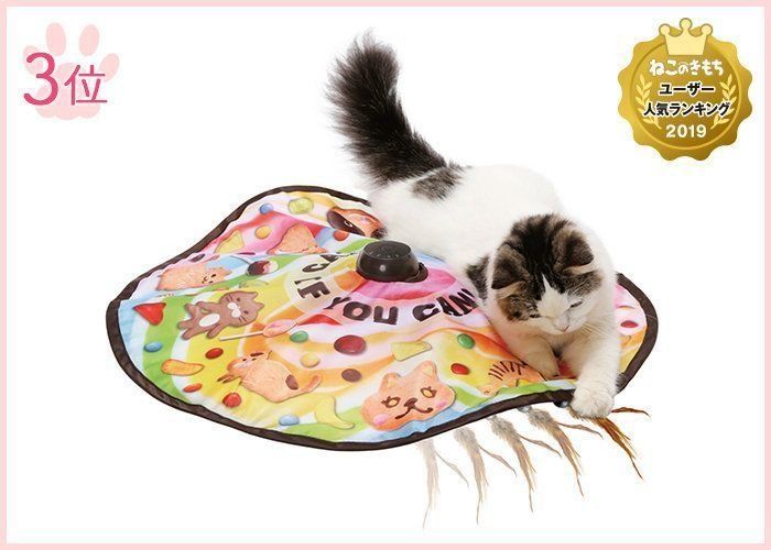 シートの周りを電動で回る羽スティックを、猫が追いかけて遊ぶおもちゃ。初級・中級・上級の3段階で回る速度を設定できるので、日によって速さを変えてみるのも楽しいかも。動き始めたとたんに虜になる猫が多く、「自分でスイッチを入れて遊び始める」という猫もいるのだとか!