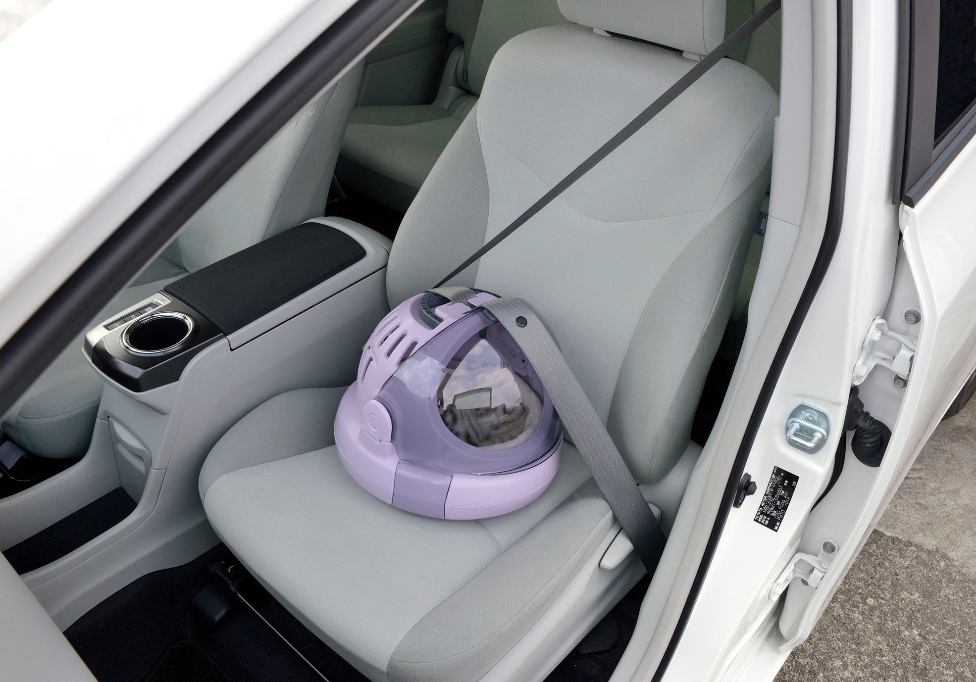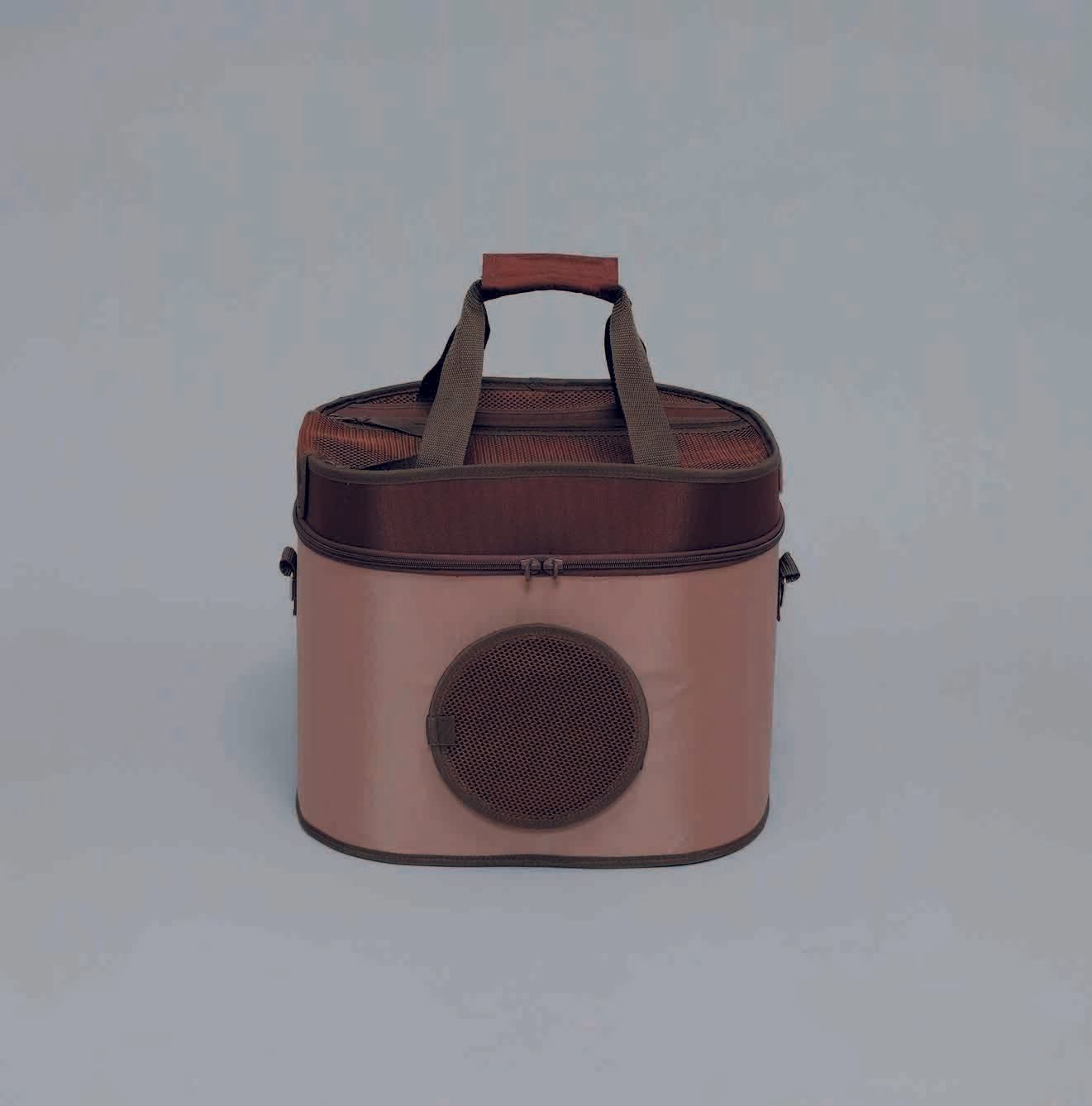 キャリーバッグ、車内で座席に固定できるドライブBOX、猫用ハウスとして使用できる3WAYのキャリー。キャリーバッグとして持ち運ぶときは、肩掛けと手持ちの2WAYのストラップが選べて便利です。天井と正面にはメッシュ素材の窓が付いていて、風通しもよさそう。