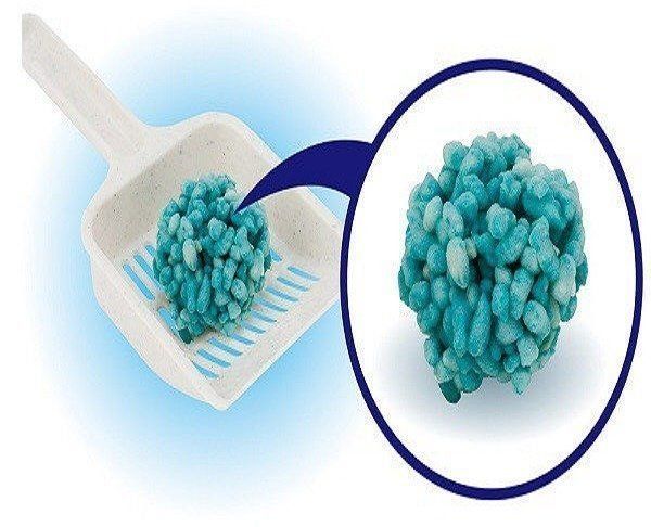 オシッコで濡れると粒同士がしっかり固まるので崩れにくいのはもちろん、濡れた部分が青く変わるので取り除くのも簡単! トイレの底も汚れにくいので清潔を保ちやすく、独自の消臭技術によりオシッコのニオイが残りにくい点も人気。