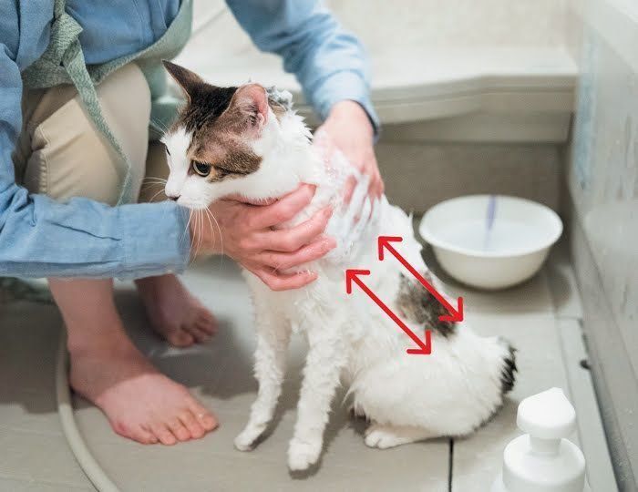 飼い主さんは猫が暴れてもケガをしないよう、手足が隠れる服を着るのがおすすめ。胸まで覆うエプロンも用意すると、濡れた猫を乾かす際に活躍します。
