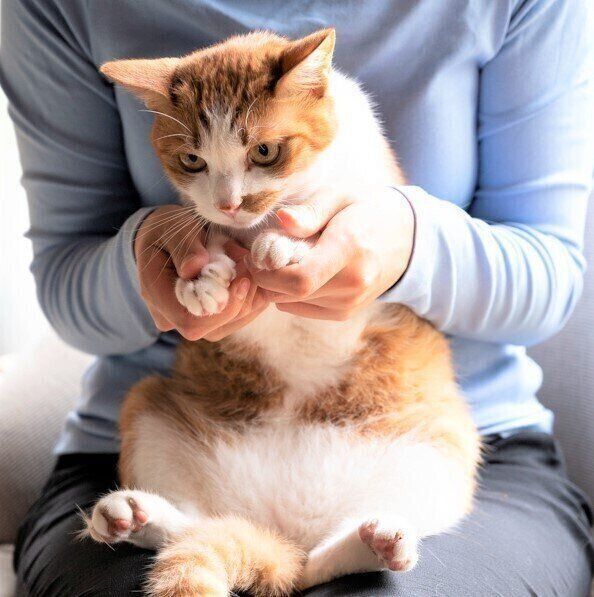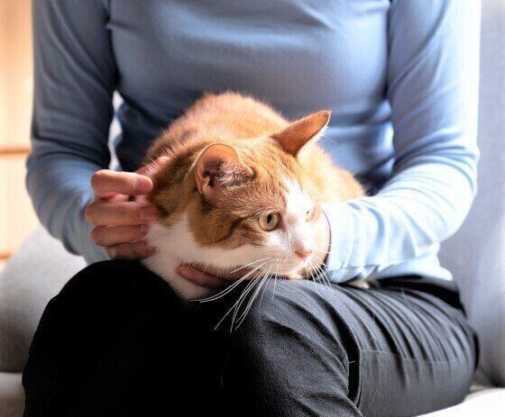 ポイント1 猫を膝の上にのせてやさしくなでる