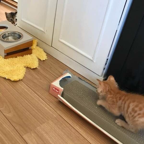 ・おもちゃをうまく捕まえられずに爪とぎを始める